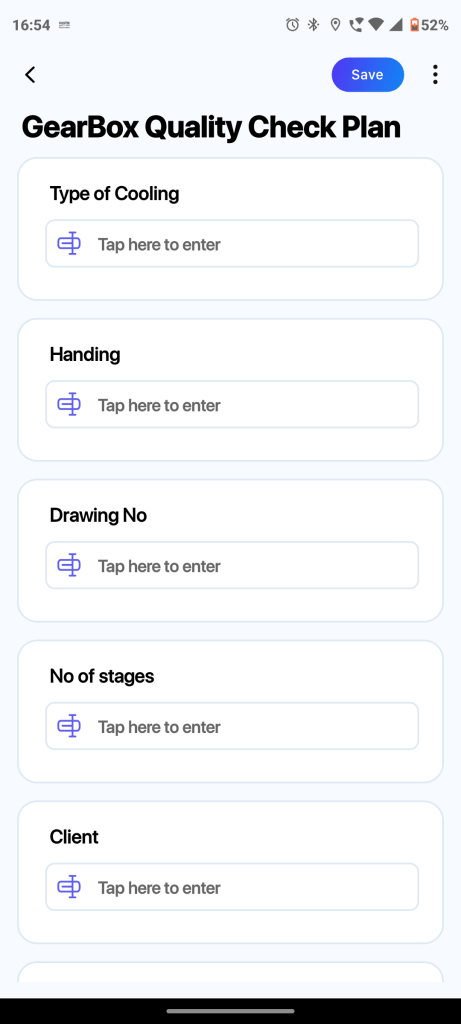 • Customized Checklist Templates: Axonator’s platform allows for the creation of customized checklist templates tailored to the clients specific needs. These templates encompass critical components such as gearboxes, pumps, cooling systems, bearings, axial play, shaft integrity, backlash readings, couplings, and drive ends.
