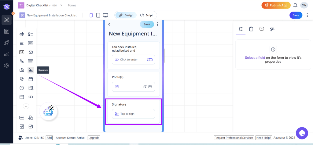 • Locate the Signature field in the left panel