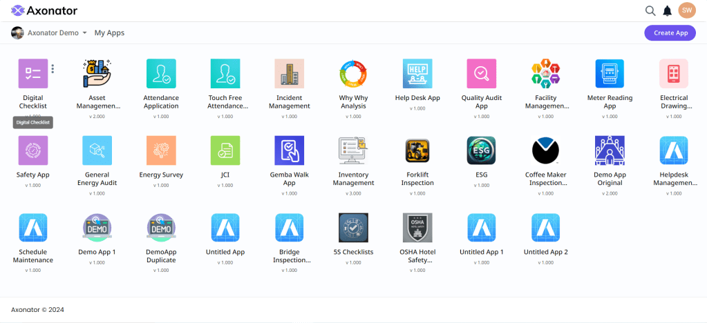 2. At least one app created with an object form and an action form