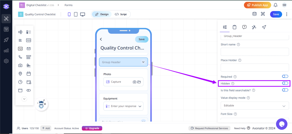 Note: All fields between the two group headers will be hidden when you hide the first group header.