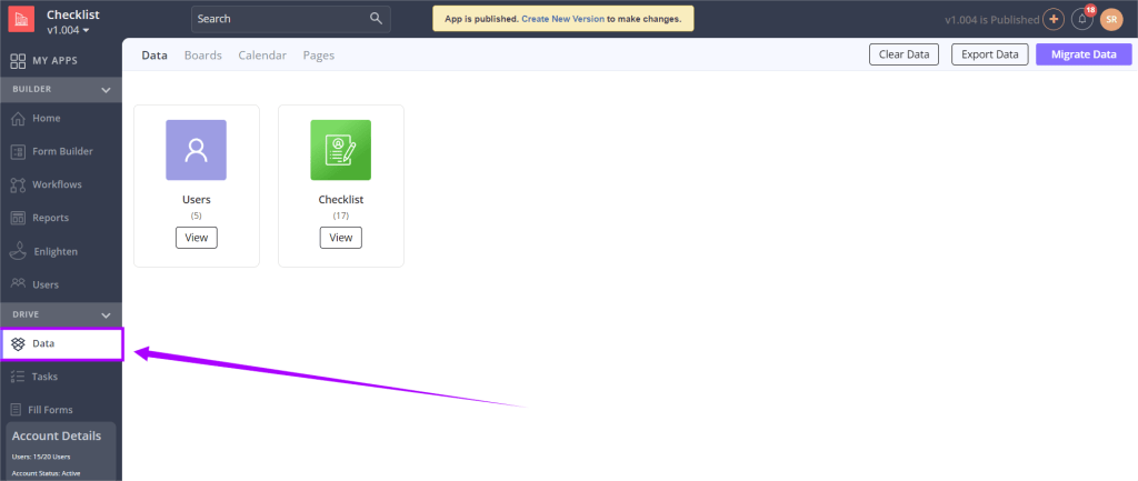 • Here, you can view detailed records, such as checklist submissions, and track the progress of tasks